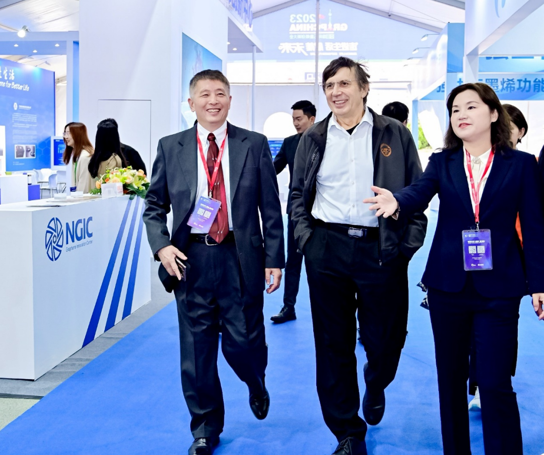 諾獎(jiǎng)對(duì)話(huà)會(huì)之前,安德烈·蓋姆院士在蕭小月院士的陪同下,對(duì)石墨烯成果展出進(jìn)行了參觀(guān)并提出了許多寶貴的建設(shè)性意見(jiàn)。