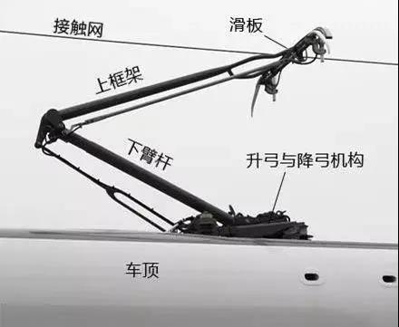 高鐵軌道上方都設(shè)置了接觸網(wǎng)導(dǎo)線,通過車身上的列車受電弓,將電能從導(dǎo)線接入到車中。