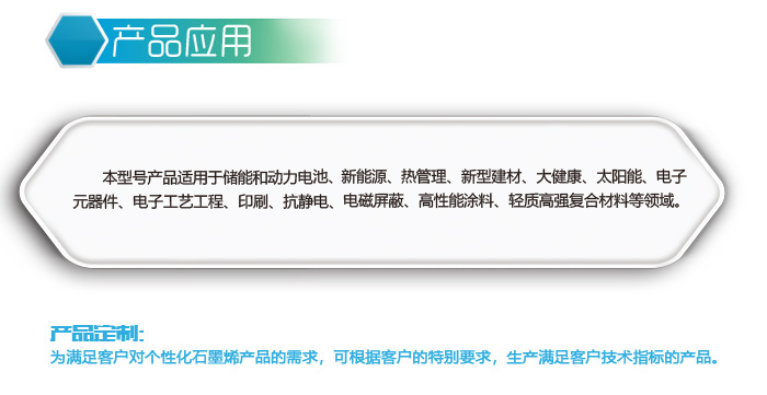 本型號(hào)產(chǎn)品適用于儲(chǔ)能和動(dòng)力電池、新能源、熱管理、新型建材、大健康、太陽(yáng)能、電子元器件、電子工藝工程、印刷、抗靜電、電磁屏蔽、高性能涂料、輕質(zhì)高強(qiáng)復(fù)合材料等領(lǐng)域。